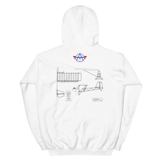 Affordaplane 3 view drawing on back Unisex Hoodie