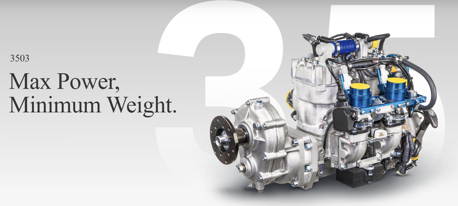 The 35 Series liquid cooled two-stroke engines offer the maximum power-to-weight ratios available in the 70-horsepower market.